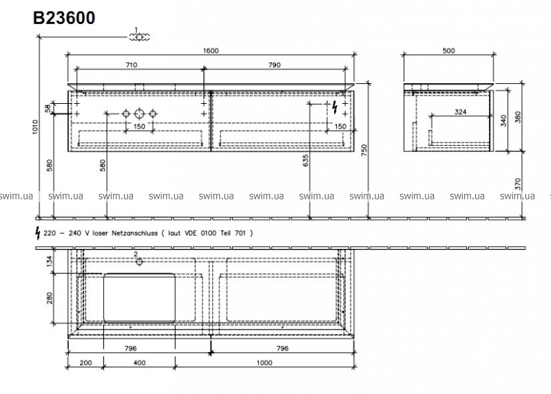- Размер: 1600x500x380 мм