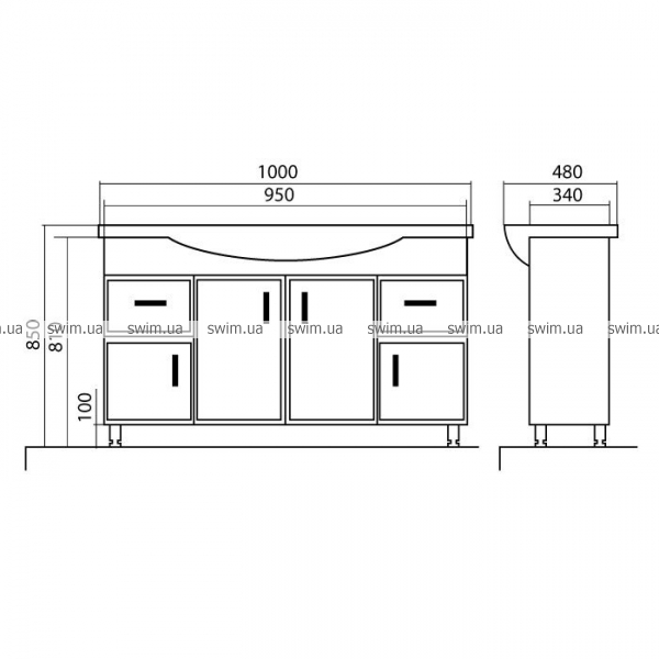 - Размер: 850х1000х480/340 мм