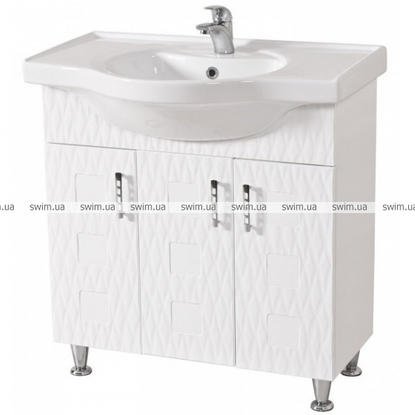 Тумба с умывальником - три отделения. Отличное решение для ванной комнаты. Позволит упорядочить ванные принадлежности и функционально использовать пространство. 3D фасад придаёт мебели для ванной уникальную огранку. Качественные материалы и комплектующие обеспечат вам комфорт в пользовании мебелью.