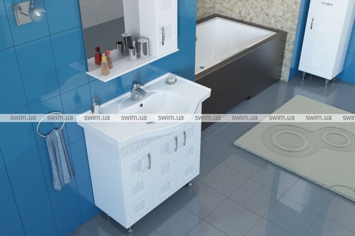 Мебель выглядит стильно и современно. Взгляд притягивает 3D фасад, который придаст уникальности любой ванной.