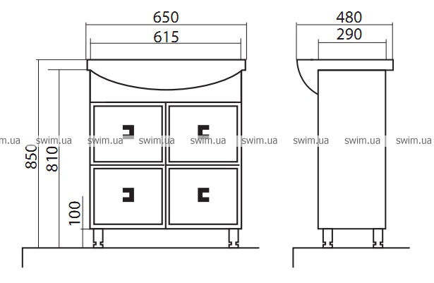 - Тумба "МОБИС" с умывальником "Нова" 65 см