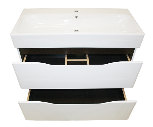 В коллекции используются классические прямоугольные умывальники производства «Turkuaz» (Турция), которые уже заслужили добрую славу. И это не удивительно, ведь формы простые, а размеры – удобные для планирования (60, 80, 100 см). Тумбы с выдвижными ящиками обеспечат вам много места для хранения ванных принадлежностей. А эффектные зеркала с орнаментом позволят создать свою совершенно неповторимую ванную комнату.