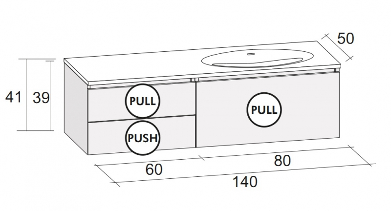 - Умывальник на одну чашу с левым крылом, без отверстий под смеситель