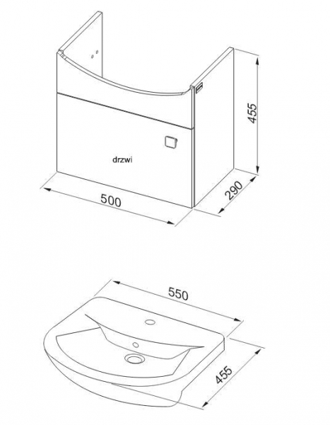 - Размер умывальника (ШхВхГ): 550х70х455 мм