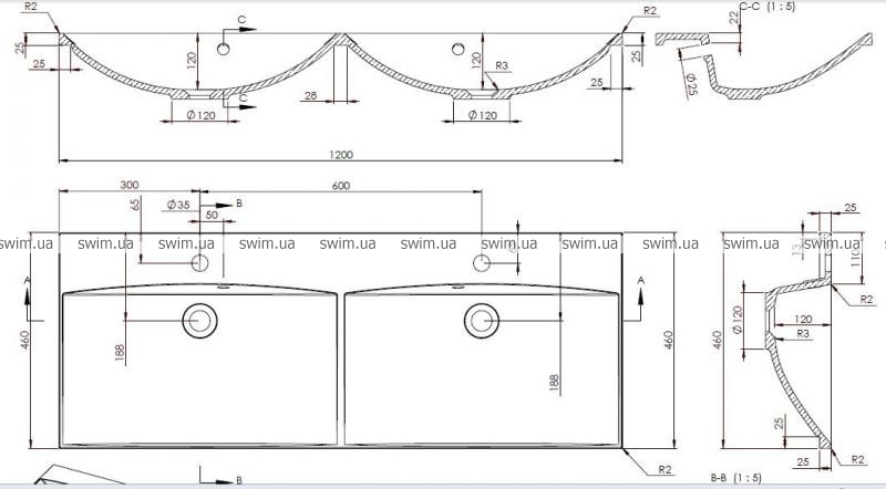 - Отвори для змішувача: стандарт (одне) на кожній чаші
