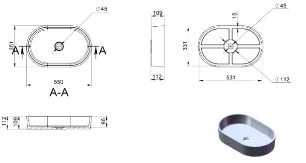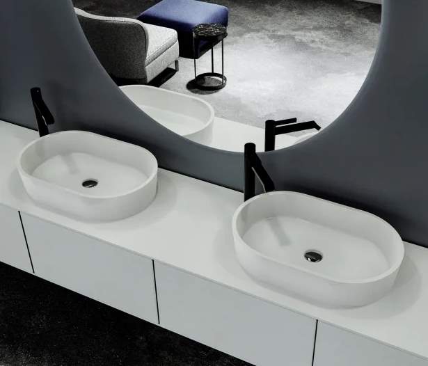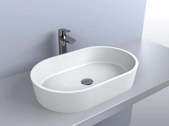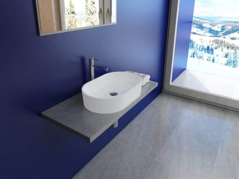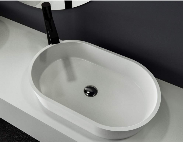 Овальний умивальник із литого мармуру SORRENTO - відмінне рішення для ванни у сучасному стилі. Середньої товщини стінки раковини, скошені на дно, створюють ефект широкої об ємної чаші. При цьому умивальник не займає багато місця. Раковина передбачає окремий або настінний змішувач. Умивальник має накладний тип монтажу. Сантехніка MIRAGGIO виробляється за авторською технологією змішування мармуровою крихти та поліефірної смоли в вакуумі. Матеріал умивальника - MIRAMARBLE. В його структурі відсутні мікропори, що виключає розвиток бактерій в товщі стінок. Додатково виріб покритий антибактеріальним гелем. Поверхня умивальника глянцева. Литий мармур відрізняється здатністю поглинати звуки води та приймати температуру довкілля. Завдяки цьому умивальник з литого мармуру безшумний, зручний та надійний. Він стійкий до температурних перепадів, забруднень та подряпин. Оптимальний температурний діапазон експлуатації виробу від -65 до +65 °C. Заводський стандарт моделі SORRENTO не передбачає отвори під змішувач та перелив. Опціонально донний клапан клік-клак можна замовити на сайті. Ви можете замовити кольорову раковину SORRENTO із покриттям у будь-який відтінок на палітрі RAL. Покриття RAL наноситься тільки на зовнішній бік виробу відповідно до санітарних норм. Умивальник SORRENTO також може бути виготовлений у технологіях MIRAMARBLE MATT та MIRASOFT.