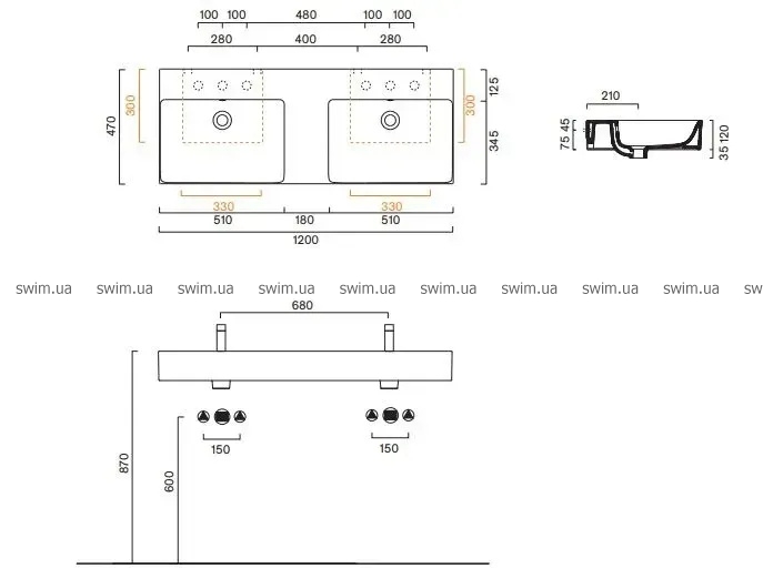- 6 намічених отворів під змішувач