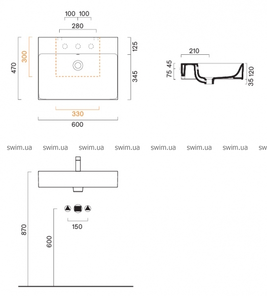 - установка: підвісна, на стільницю або тумбу