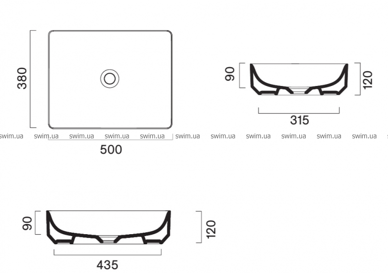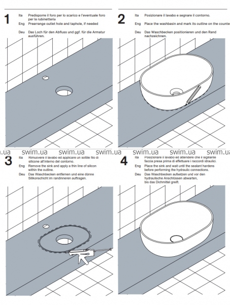 з отвором переливу - установка: на стільницю або тумбу