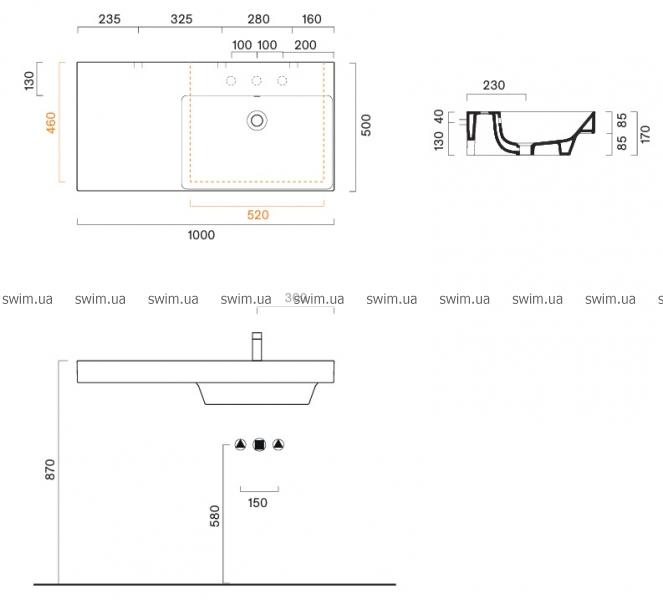 Умивальник керамічний Catalano Zero 100 110DZEUP00 правий