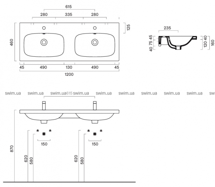 Умивальник керамічний подвійний Catalano Alvea 120 0621220001