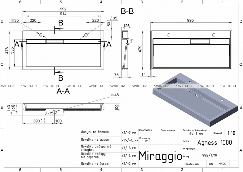 - Ширина, мм: 995