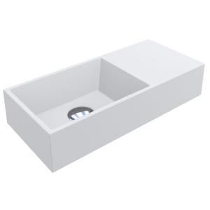 Прямокутний матовий умивальник із литого мармуру COPPER 500 з глибокою трапецієподібною чашею та крилом для засобів гігієни - зручний та витончений аксесуар ванної кімнати. Раковина передбачає окремий або настінний змішувач. Має накладний спосіб монтажу та легко встановлюється на тумбу або полицю. Сантехніка MIRAGGIO виробляється за авторською технологією змішування мармуровою крихти та поліефірної смоли в вакуумі. Матеріал умивальника - MIRAMARBLE MATT. В її структурі відсутні мікропори, що виключає розвиток бактерій в товщі стінок. Додатково виріб покритий антибактеріальним гелем. Продукція полірується пастою з матовим фінішем. Поверхня умивальника матова. Литий мармур відрізняється здатністю поглинати звуки води та приймати температуру довкілля. Завдяки цьому умивальник з литого мармуру безшумний, зручний та надійний. Він стійкий до температурних перепадів, забруднень та подряпин. Оптимальний температурний діапазон експлуатації виробу від -65 до +65 °C. Заводський стандарт моделі COPPER 500 не передбачає отвори під змішувач та перелив. За потреби можна замовити умивальник з отвором для змішувача. Опціонально донний клапан клік-клак можна замовити на сайті. Ви можете замовити кольорову раковину COPPER 500 з покриттям у будь-який відтінок на палітрі RAL. Покриття RAL наноситься тільки на зовнішній бік виробу відповідно до санітарних норм. Умивальник COPPER 500 також може бути виготовлений у технологіях MIRAMARBLE та MIRASOFT. Ознайомтесь з правилами експлуатації та догляду за виробами MIRAMARBLE MATT тут. Зверніть увагу, такі умивальники мають бархатисто-матову, але більш пористу поверхню порівняно з виробами MIRASOFT, тому потребують більш ретельного догляду.