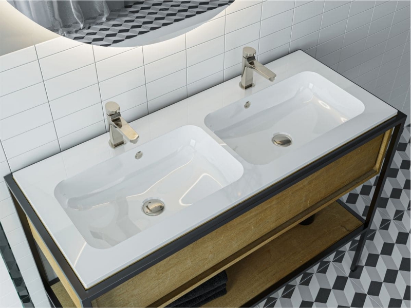 Подвійний умивальник із литого мармуру на тумбу DELLA 1100-2 MATT з прямокутними чашами - чудове рішення для великої родини. Широкі крила дозволяють комфортно розташувати банне приладдя та проводити гігієнічні процедури вдвох. Раковина має два отвори під змішувач та переливи у кожній чаші. Умивальник може бути встановлений накладним методом на тумбу або врізаний у полицю. Сантехніка MIRAGGIO виробляється за авторською технологією змішування мармуровою крихти та поліефірної смоли в вакуумі. Матеріал умивальника - MIRAMARBLE. В його структурі відсутні мікропори, що виключає розвиток бактерій в товщі стінок. Додатково виріб покритий антибактеріальним гелем. Поверхня умивальника глянцева. Литий мармур відрізняється здатністю поглинати звуки води та приймати температуру довкілля. Завдяки цьому умивальник з литого мармуру безшумний, зручний та надійний. Він стійкий до температурних перепадів, забруднень та подряпин. Оптимальний температурний діапазон експлуатації виробу від -65 до +65 °C. Заводський стандарт моделі DELLA 1100-2 MATT передбачає два отвори під змішувач та два під перелив. Опціонально можна замовити умивальник з одним із них або зовсім без отворів. Додатково донний клік-клак можна замовити на сайті. Модель DELLA 1100-2 MATT також може бути виготовлена у технологіях MIRAMARBLE MATT та MIRASOFT.