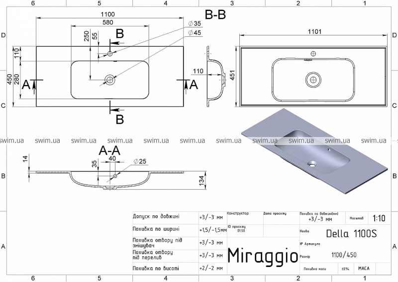 - Комплектація: Умивальник, перелив, гарантійний талон