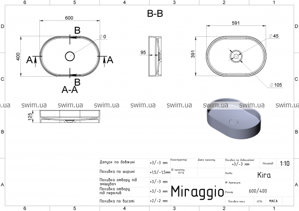 Шалено гарна овальна матова раковина KIRA стала нашою улюбленицею! Прості лінії, тонкі стінки чаші – створюють досконалий образ. Упевнені, ця модель стане особливістю вашої ванної кімнати. Раковина передбачає окремий або настінний змішувач. Умивальник має накладний тип монтажу. Отвір під слив прихований декоративною накладкою.Сантехніка MIRAGGIO виробляється за авторською технологією змішування бокситу* і поліефірної смоли у вакуумі. Матеріал умивальника - MIRASOFT. Виріб має однорідну структуру на всю товщину стінок, без додаткового покриття. У матеріалі умивальника відсутні мікропори, що виключає розвиток бактерій всередині і на поверхні стінок. Поверхня умивальника - глянсова.