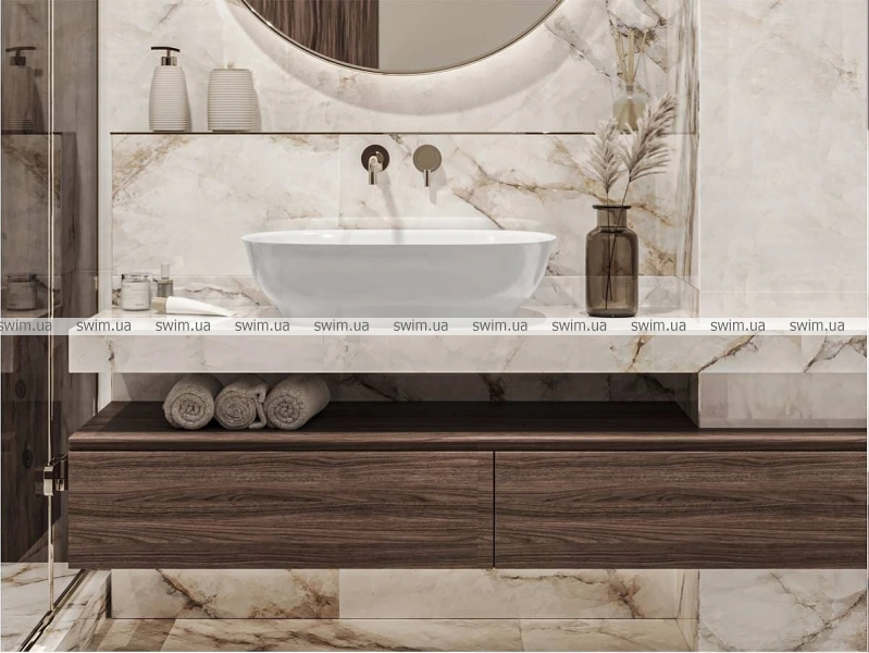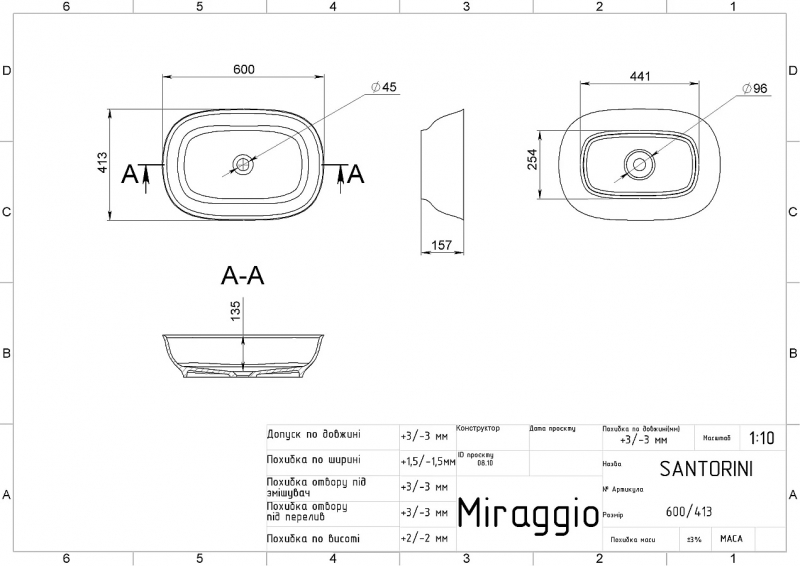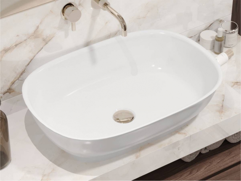 Прямокутний умивальник-чаша з литого мармуру SANTORINI - ідеальний варіант для ванни в стилі прованс. Заокруглені лінії, тонкі стінки, витончена ніжка-основа, містка чаша забезпечать функціональність та привабливий акцент в інтер’єрі. Умивальник передбачає окремостоячий або вмонтований в стіну змішувач. Має накладний тип встановлення на тумбу або стільницю. Сантехніка MIRAGGIO виробляється за авторською технологією змішування мармуровою крихти та поліефірної смоли в вакуумі. Матеріал умивальника - MIRAMARBLE. В його структурі відсутні мікропори, що виключає розвиток бактерій в товщі стінок. Додатково виріб покритий антибактеріальним гелем. Поверхня умивальника глянцева. Литий мармур відрізняється здатністю поглинати звуки води та приймати температуру довкілля. Завдяки цьому умивальник з литого мармуру безшумний, зручний та надійний. Він стійкий до температурних перепадів, забруднень та подряпин. Оптимальний температурний діапазон експлуатації виробу від -65 до +65 °C. Заводський стандарт моделі SANTORINI не передбачає отвори під змішувач та перелив. Додатково донний клапан клік-клак можна замовити на сайті. Ви можете замовити кольорову раковину SANTORINI з покриттям у будь-який відтінок на палітрі RAL. Покриття RAL наноситься тільки на зовнішній бік виробу відповідно до санітарних норм. Умивальник SANTORINI також може бути виготовлений у технологіях MIRAMARBLE MATT.