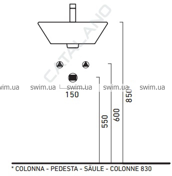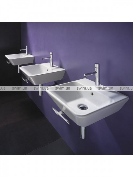 Раковина имеет подвесную установку, полувстраемую или на мебели. Предусмотрена для кранов на одно отверстие, для кранов на три отверстия или для настенных кранов. Имеет фронтальные полотенцедержатели из хромированной латуни.