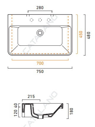 Раковина имеет подвесную установку, полувстраемую или на мебели. Предусмотрена для кранов на одно отверстие, для кранов на три отверстия или для настенных кранов. Имеет фронтальные полотенцедержатели из хромированной латуни.