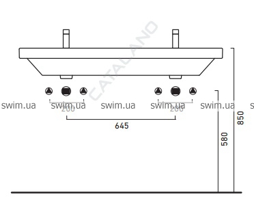- Отверстие под смеситель: отверстия 3 намечено на каждой чаше