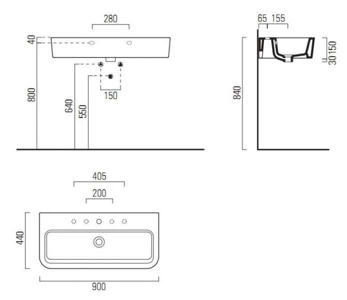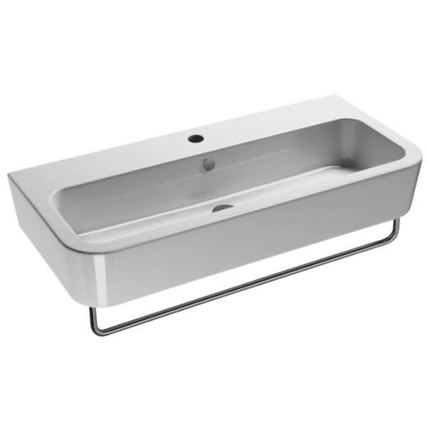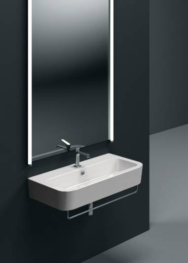 Умывальник 90X44 предназначен для смесителя на 1 отв.(в 5 позициях), на 3 отв. или со стены. Установка - подвесная или накладная. Можно комплектовать с хромированным металлическим полотенцедержателем (MMB90C) с круглым сечением.