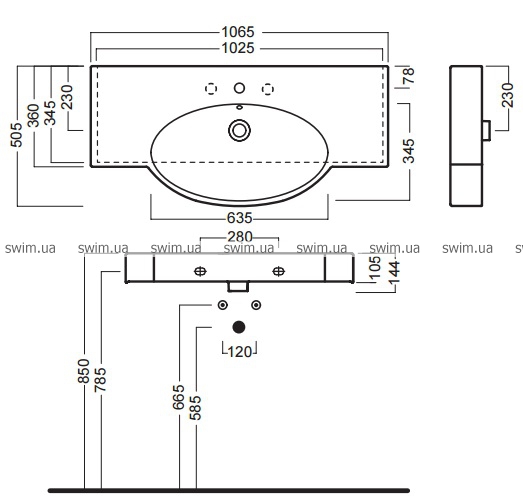 Подвесной настенный умывальник, может также устанавливаться на мебель.