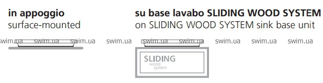 Накладной умывальник устанавливается на полку или на SLIDING Wood System. Комбинируется с аксессуарами и сифоном в эстетическом исполнении.