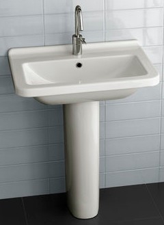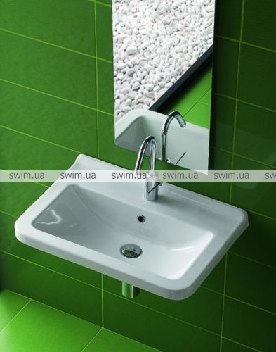 Подвесная раковина для пристенного монтажа. Может комплектоваться с колонной, полуколонной или просто быть с открытым сифоном. Может встраиваться в мебель.