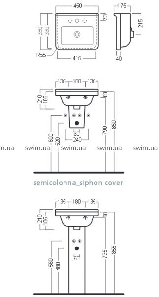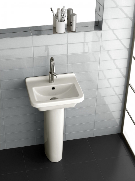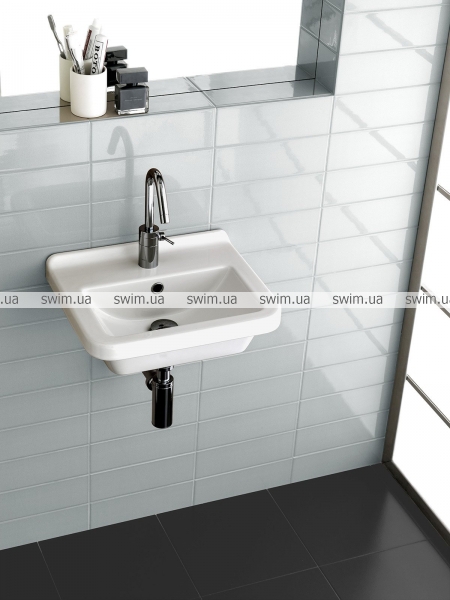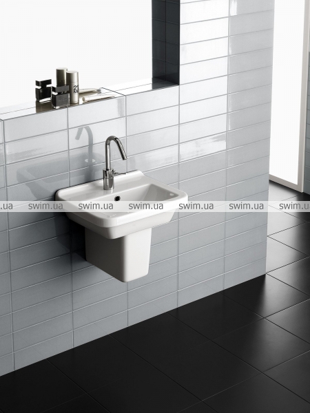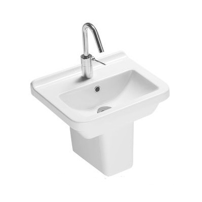 Подвесная раковина для пристенного монтажа. Может комплектоваться с колонной, полуколонной или просто быть с открытым сифоном. Может встраиваться в мебель.