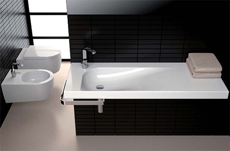 Подвесной настенный умывальник 150x50 см. Устанавливается также на тумбе или в сочетании с тумбой SLIDING WOOD SYSTEM. Комбинируются с керамическими правыми и левыми полками GRANDANGOLO 50, вешалками для полотенец и сифоном в эстетическом исполнении. Модель может быть с встроенной системой обогрева easywarm®.