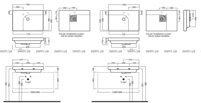 Умывальник Hatria Grandangolo G-75 YXNS/YXNT