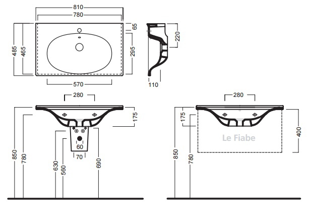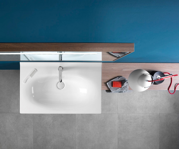 Подвесной настенный умывальник. Может также устанавливаться на тумбу под умывальник.