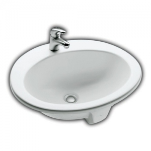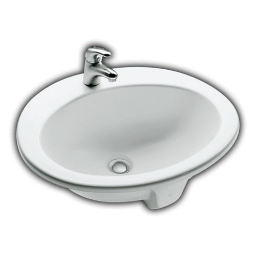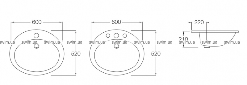 Раковина, встраиваемая сверху. Три отверстия под смеситель. Устанавливается на столешницу.