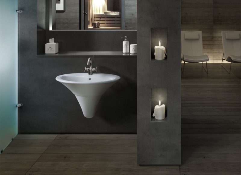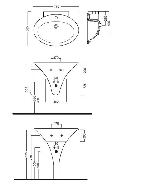 Может быть дополнен керамическим пьедесталом или полупьедесталом. Возможна также установка на мебель.