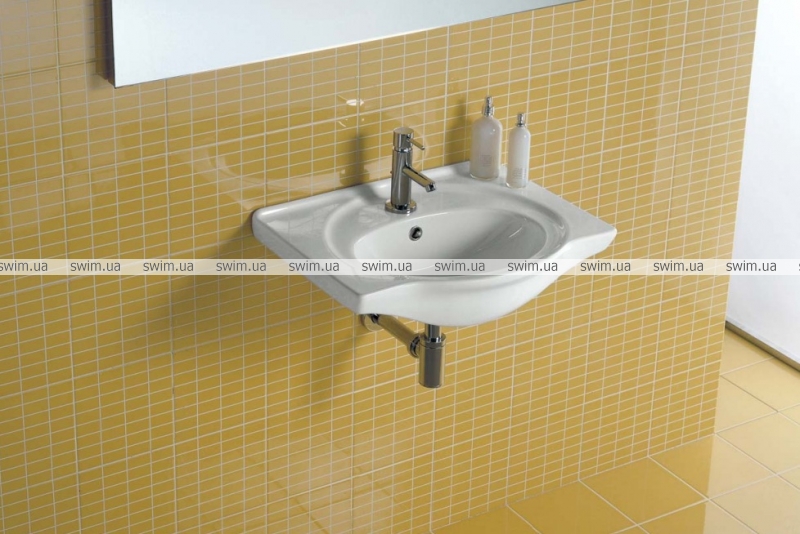 Раковина с одним отверстием под смеситель (предусмотрена разметка на три отверстия). Крепится на стену или устанавливается на мебель. Крепеж раковины (YR47) приобретается отдельно.