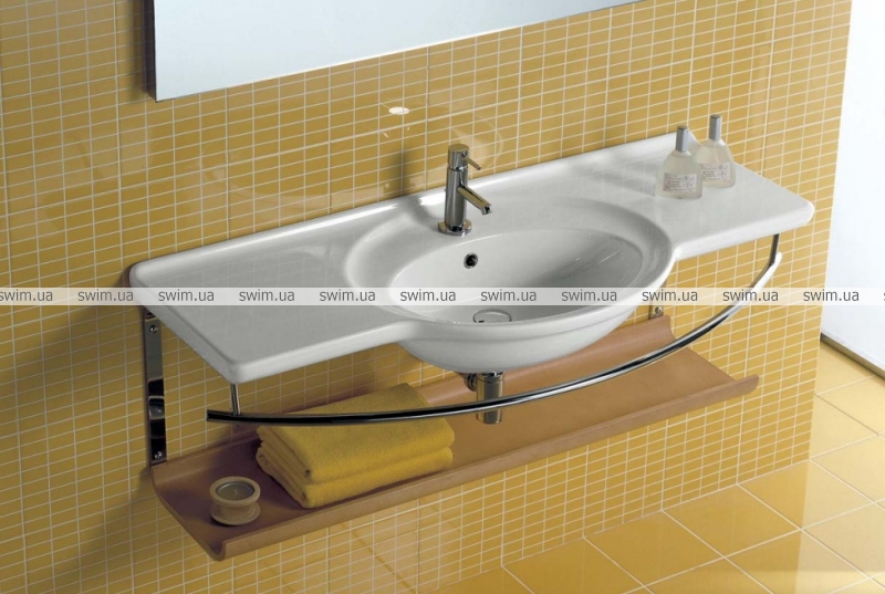 Раковина с одним отверстием под смеситель (предусмотрена разметка на три отверстия). Крепится на стену или устанавливается на мебель. Крепеж раковины (YR47) приобретается отдельно.