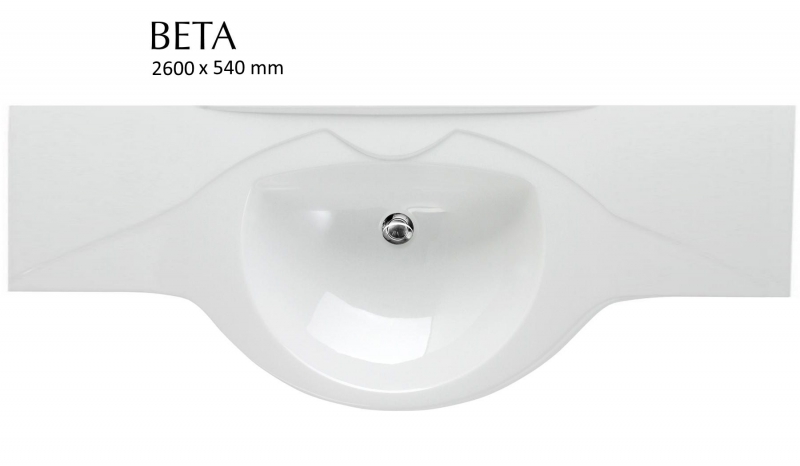 - Раковину Beta возможно изготовить по заказу в длине от 2001 до 2600 мм