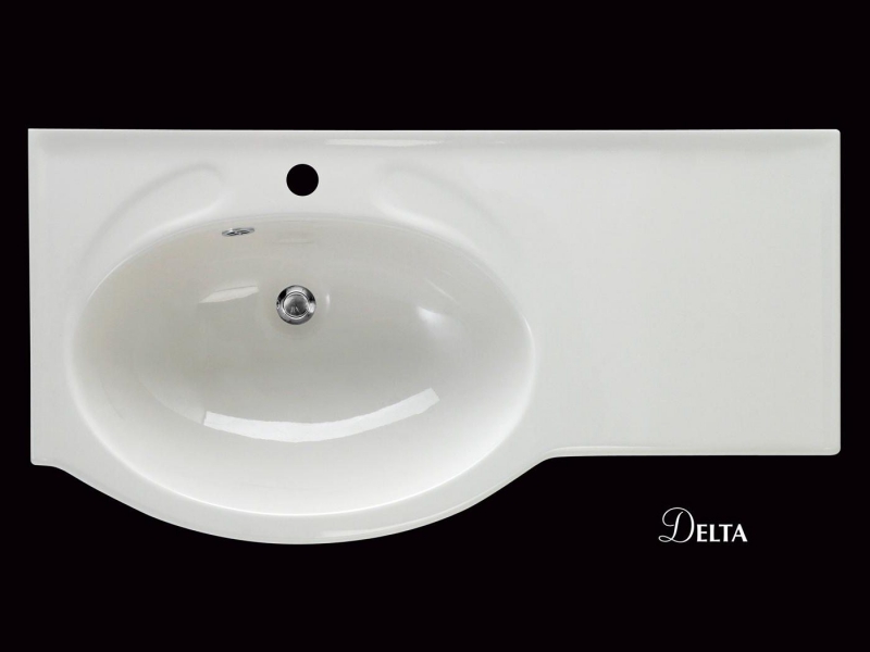 Умывальник PAA Delta 900 с чашей слева и удлинением сделанный из мрамора высокого качества. Умывальник предназначен для подвесного монтажа. Умывальник поставляется с одним отверстием под смеситель, который находится по центру и переливом. Цвет умывальника - белый. Умывальники РАА так же можно заказать в любом другом цвете.