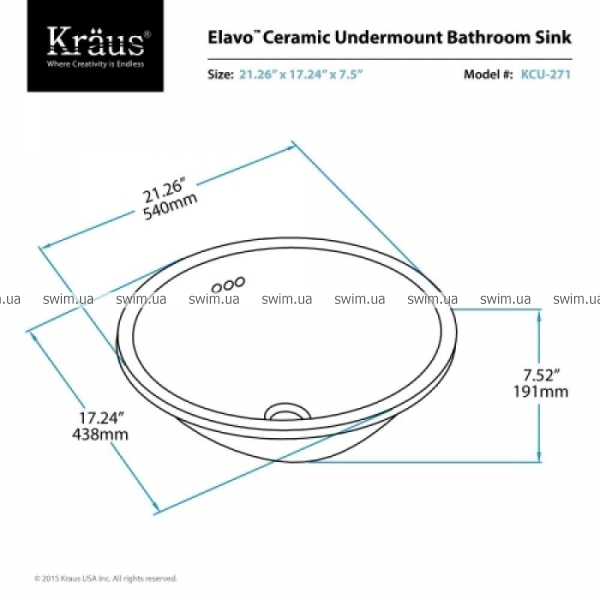 KCU-271 ELAVO - это компактная овальная утопленная керамическая раковина с тремя отверстиями для перелива и дополнительной глубиной для предупреждения разбрызгивания воды. Монтируется под столешницу.