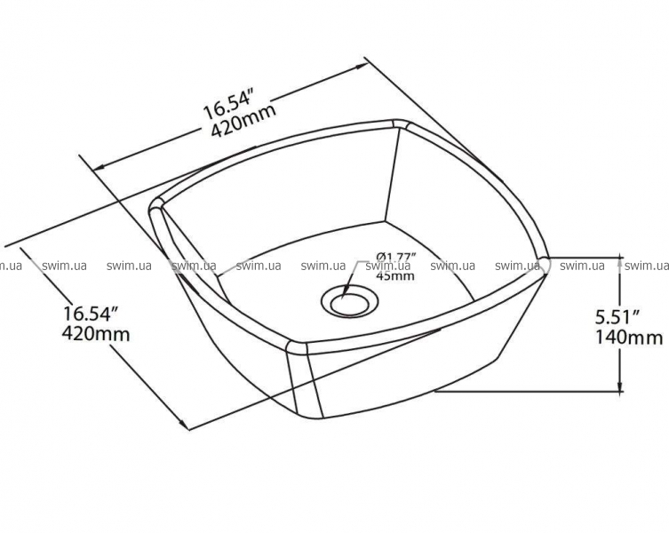 - Форма раковины: квадратная