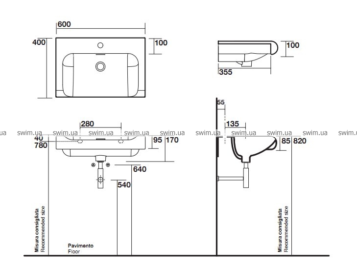 Столешница под умывальник Kerasan Inka 341830 52x35.5 см