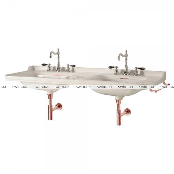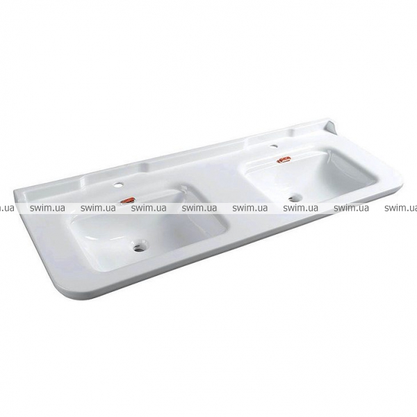 - Белый подвесной умывальник с двойной чашей 150X55