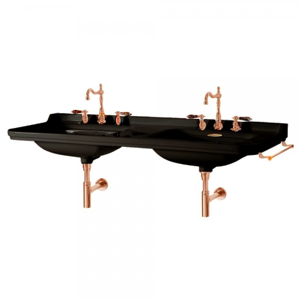 - Черный глянцевый подвесной умывальник с двойной чашей 150X55