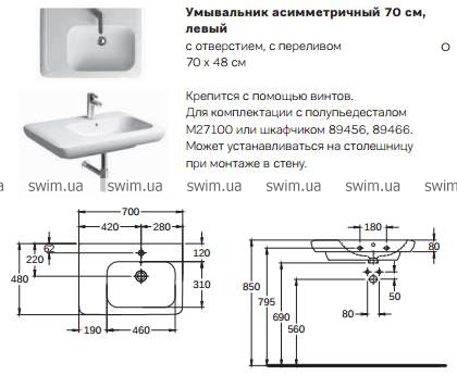 Умывальник Kolo Life M21170 левый