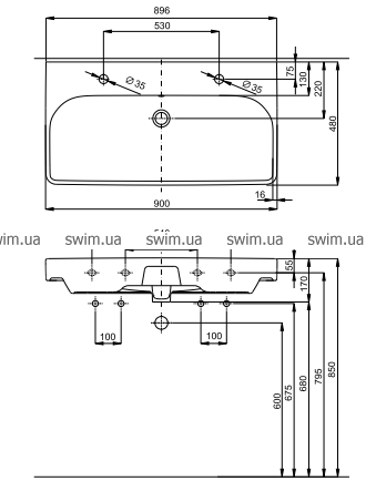 - Монтаж: подвесной, на столешницу, на полупьедестал
