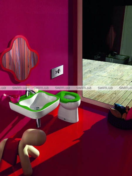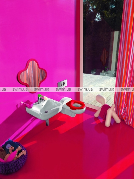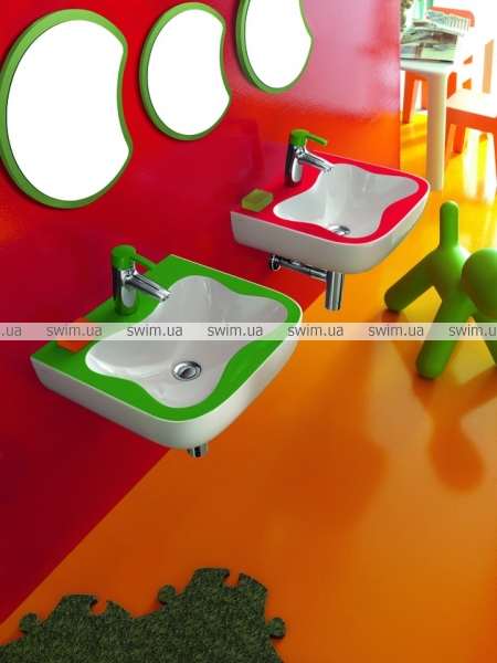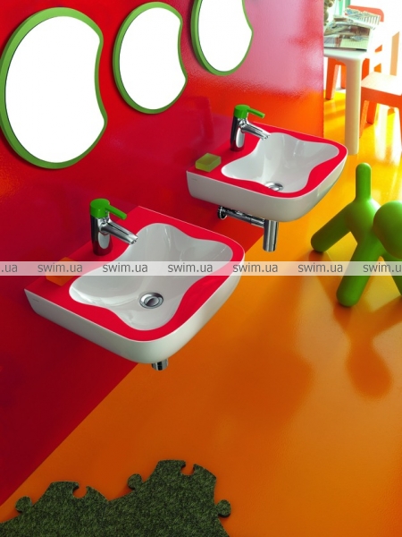 Серия Flora Kids от Laufen - творческая, красочная и дружелюбная одновременно. Центральный элемент коллекции – место для умывания с яркой раковиной в форме цветка, представленной в белом, красном и зеленом цвете. Если необходимо, например, в детском саду, несколько раковин могут располагаться рядом друг с другом и обеспечить обширное место для хранения ванных принадлежностей. В дополнение к раковине в детской ванной, вы можете приобрести керамические полочки белого, красного и зеленого цвета в форме облачков. Зеркало в виде красного цветка или длинной зеленой гусеницы состоит из части-головы и частей зеркала в форме луны, которые могут быть расположены как отдельно, так и вряд, чтобы сформировать тело гусеницы любой длины.