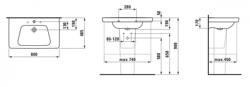 - Тип монтажа: накладной, на полупьедестал, пьедестал