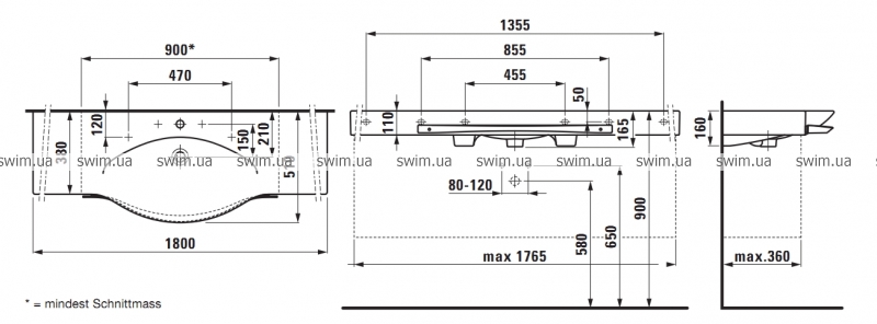 Умывальник Laufen Palace 8.1270.8.000.108.1 с полотенцедержателем
