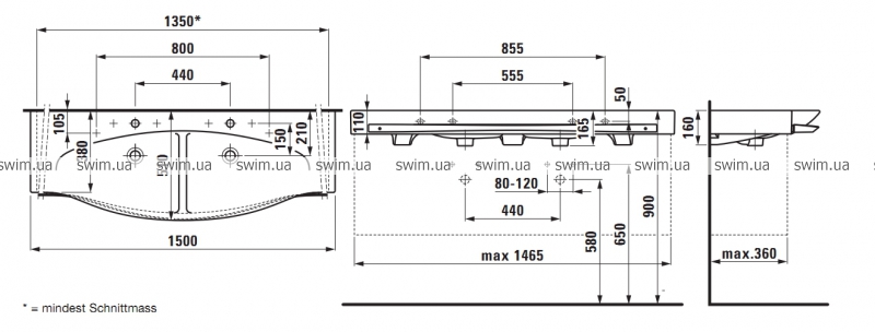 - С 1 отверстием для смесителя на каждой