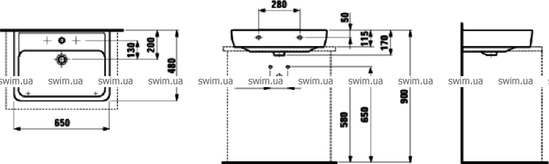 Умывальник Laufen Pro 8.1795.3.xxx.109.1